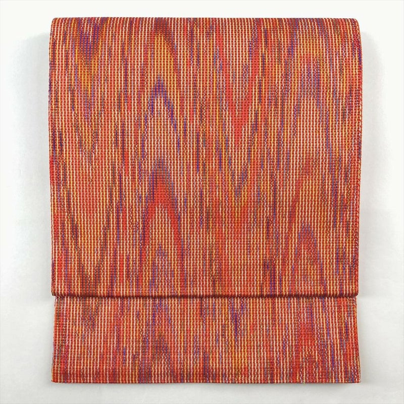 (中古)袋帯 赤 オレンジ カジュアル 六通 織り 太子間道
