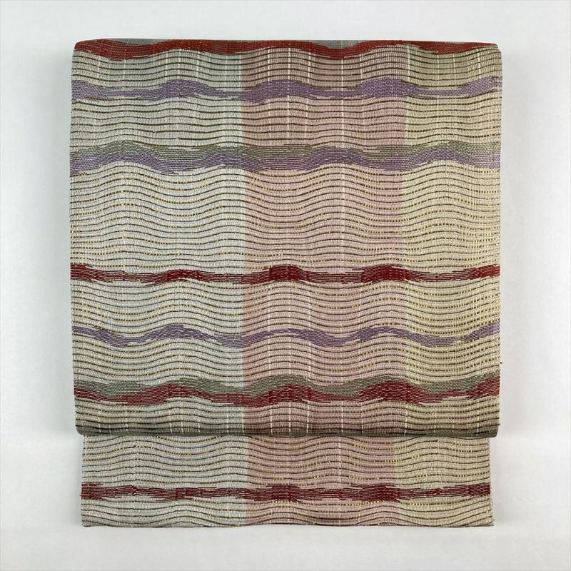 (中古)袋帯 マルチカラー カジュアル 全通 博多織 草木染め 横段 波