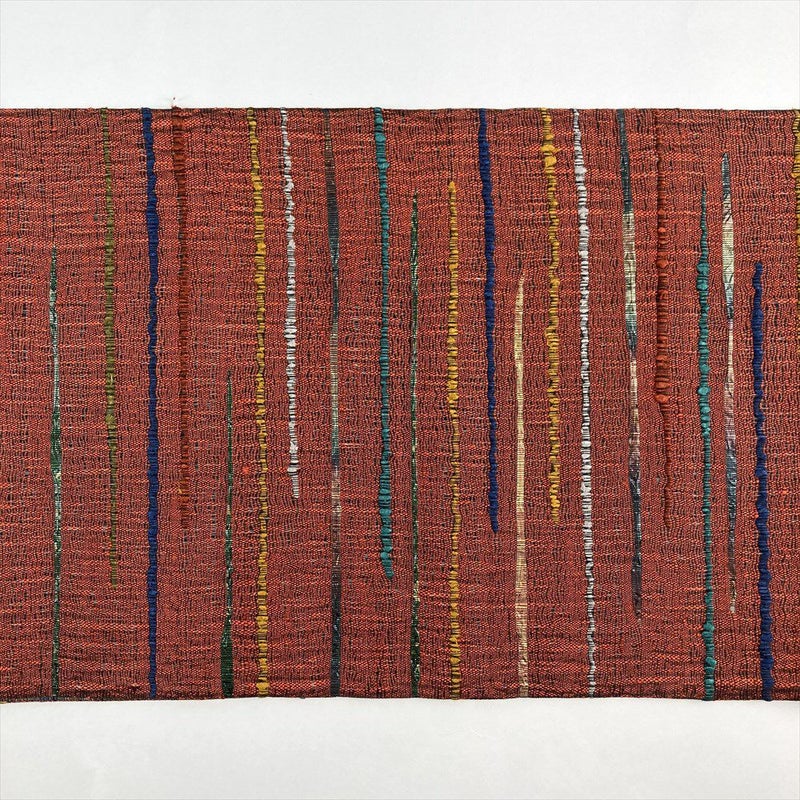 (中古)袋帯 赤茶色 カジュアル 全通 織り 途切れ横段