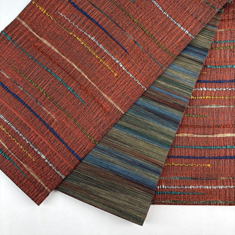 【色柄】赤茶色 カジュアル 途切れ横段 織り 全通