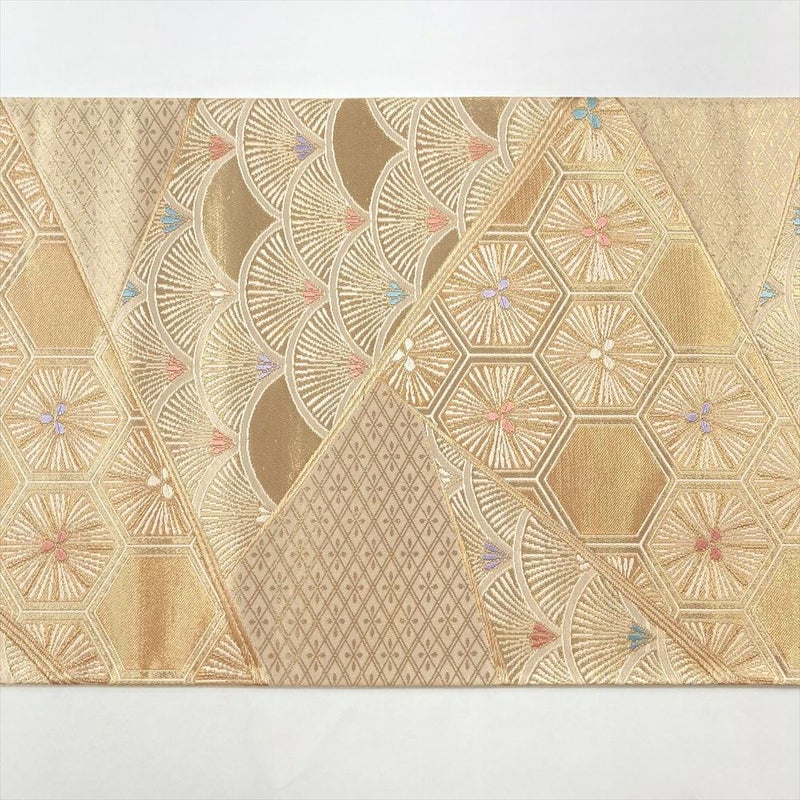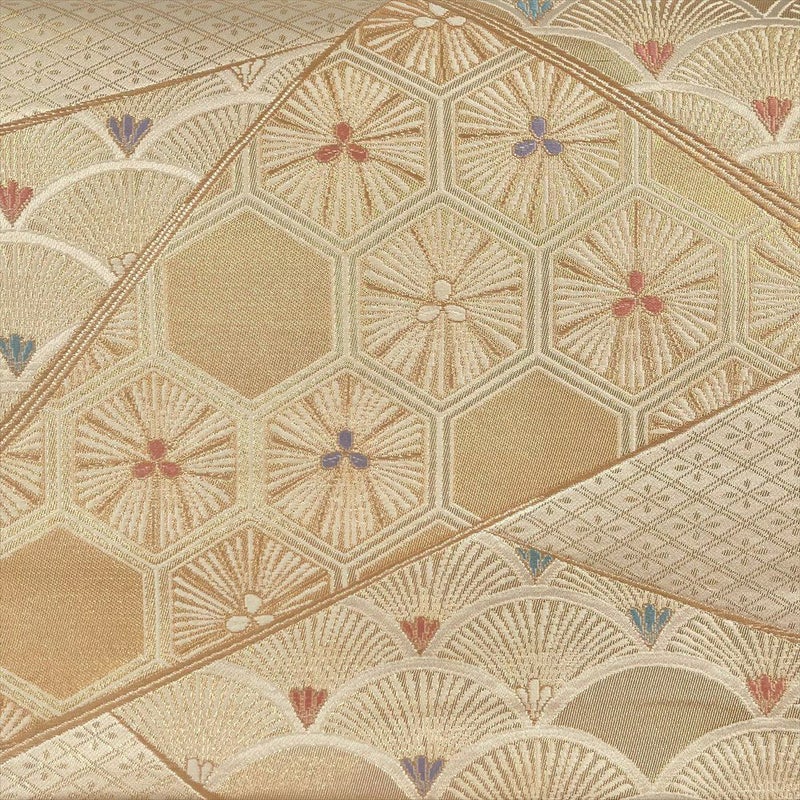 【色柄】金色 フォーマル 切り嵌め 青海波 亀甲 菱 織り 引き箔 六通
