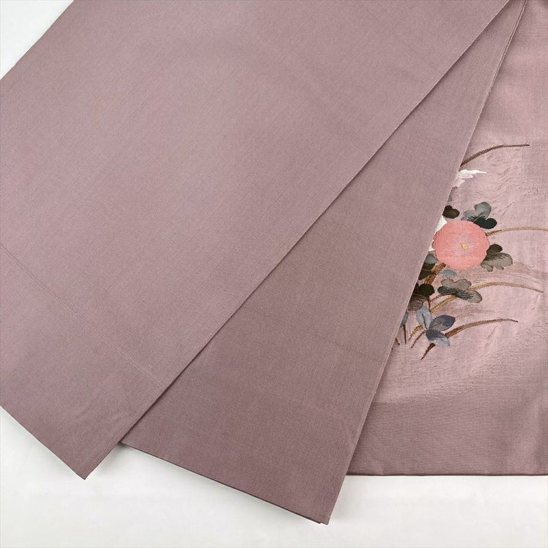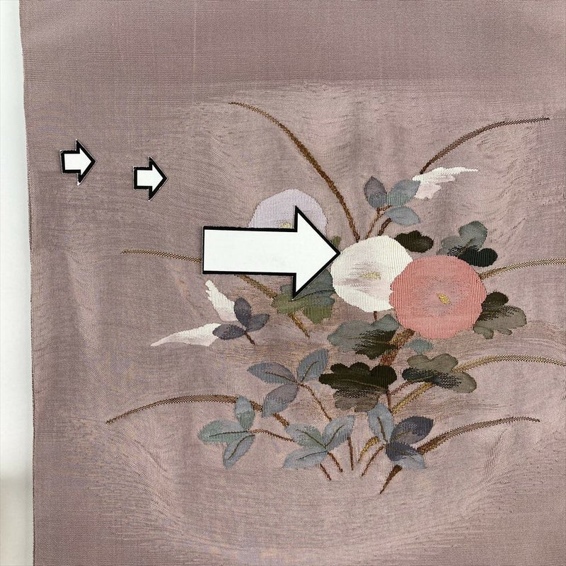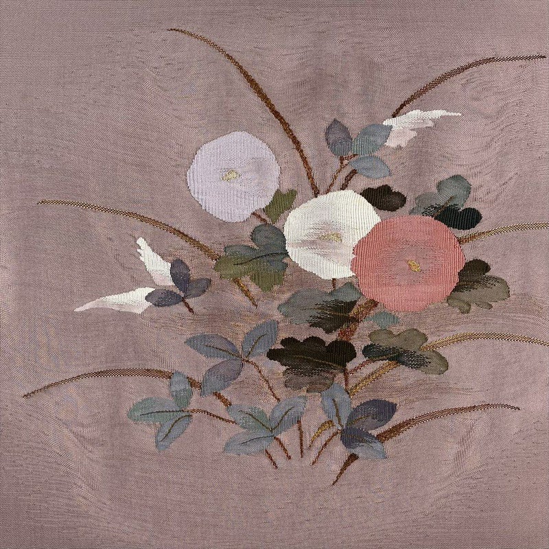 【色柄】灰桜色 ピンク色 紫色 カジュアル つづれ調 四季花 織り 金糸 色糸 六通