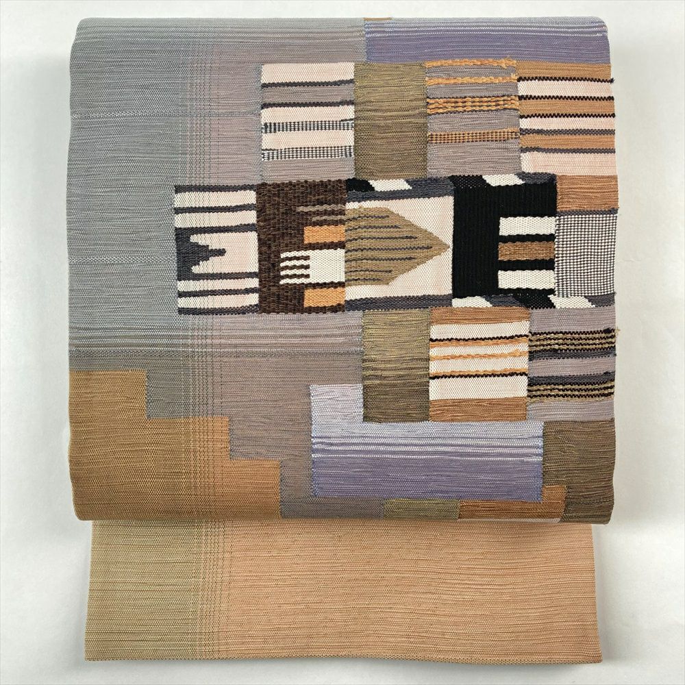 【しゃれ帯は遊び心あふれる芸術作品】 作り手のこだわりが詰まった、個性豊かなデザインが魅力です!風合い豊かな素材感と、モダンな柄行は、普段着の着物を華やかに彩ります。織りのしゃれ帯は、立体的で奥行きのある表現が可能です。染めのしゃれ帯は、自由な発想でデザインされたものが多く、モダンで洗練された印象です。保存臭がややございます