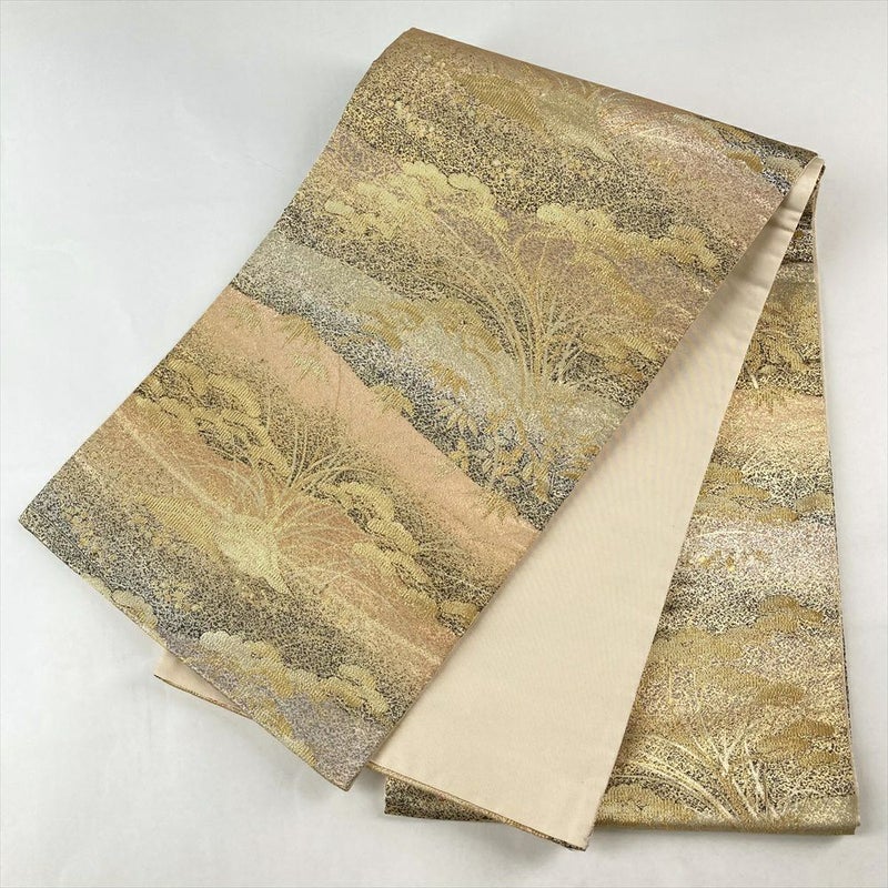 (中古)袋帯 金色 フォーマル 六通 織り 引き箔 松竹 築山 絹
