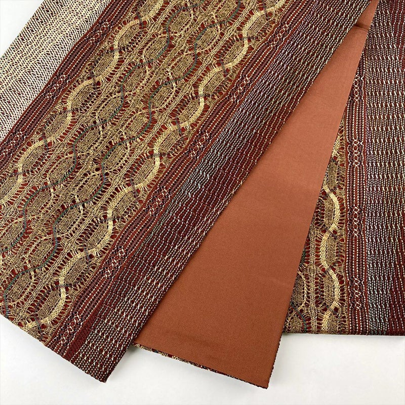 【色柄】臙脂色 赤茶色 カジュアル 組織り調 織り 金糸 六通