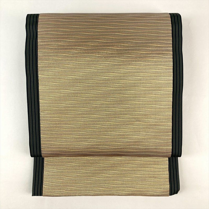 (中古)袋帯 金 茶 カジュアル 全通 織り ①変わり縞 ②金糸 波柄
