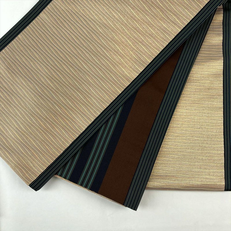 【色柄】金 茶 カジュアル ①変わり縞 ②金糸 波柄 織り 全通