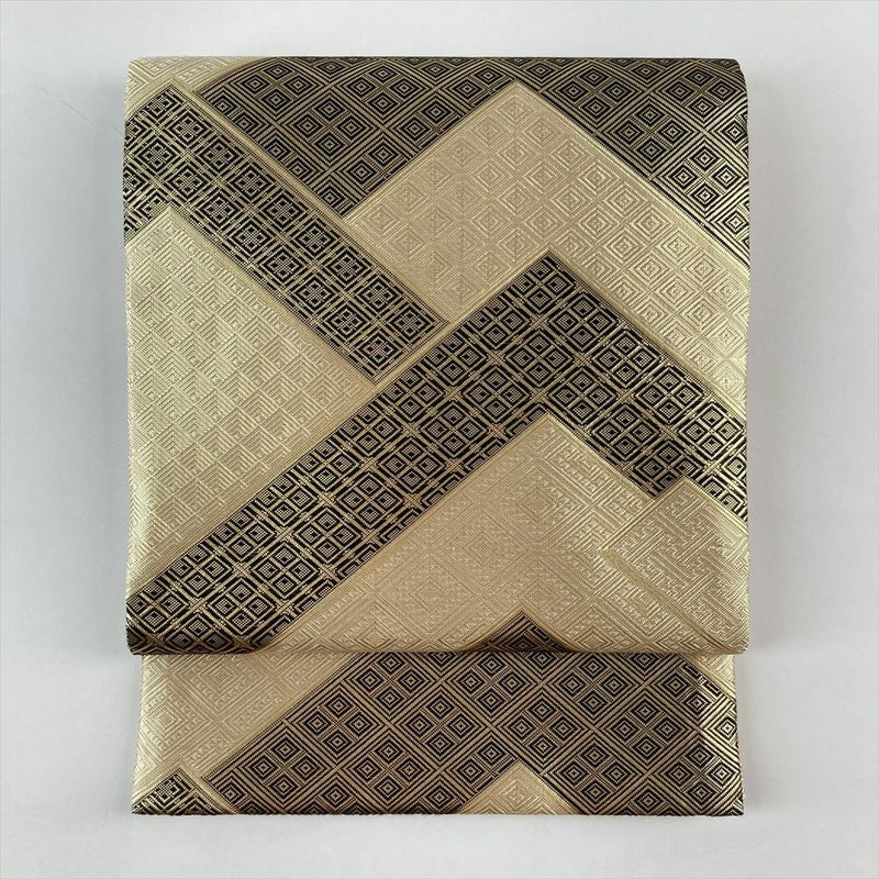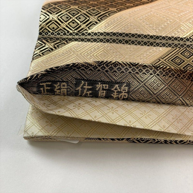 (中古)袋帯 金色 黒色 フォーマル 全通 織り 引き箔 佐賀錦 菱柄