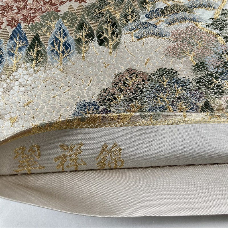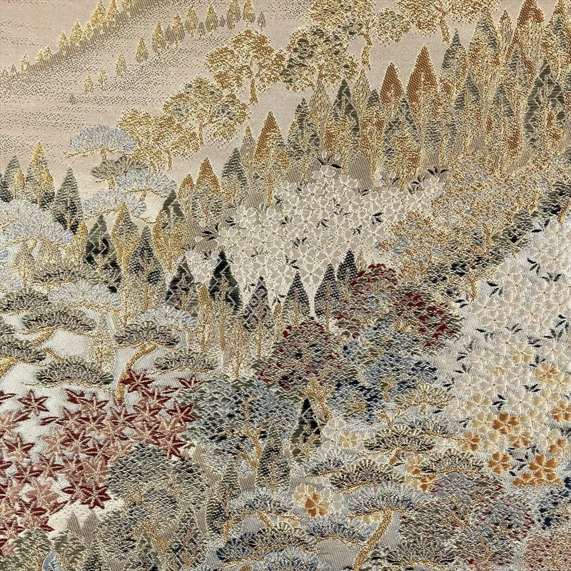 【色柄】金色 フォーマル 四季花 山の景色 織り引き箔 色糸 六通