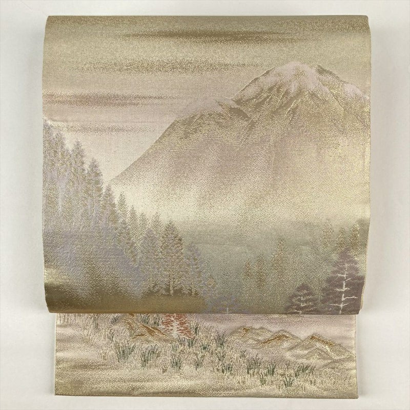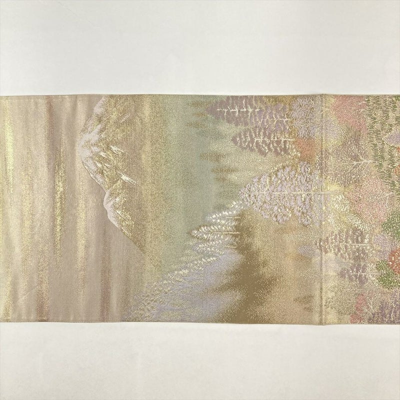 (中古)袋帯 金色 フォーマル 六通 織り 引き箔 金糸 山の景色 湖畔