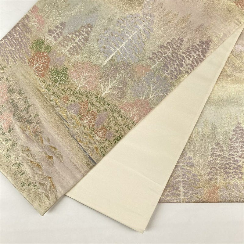 【色柄】金色 フォーマル 山の景色 湖畔 織り 引き箔 金糸 六通