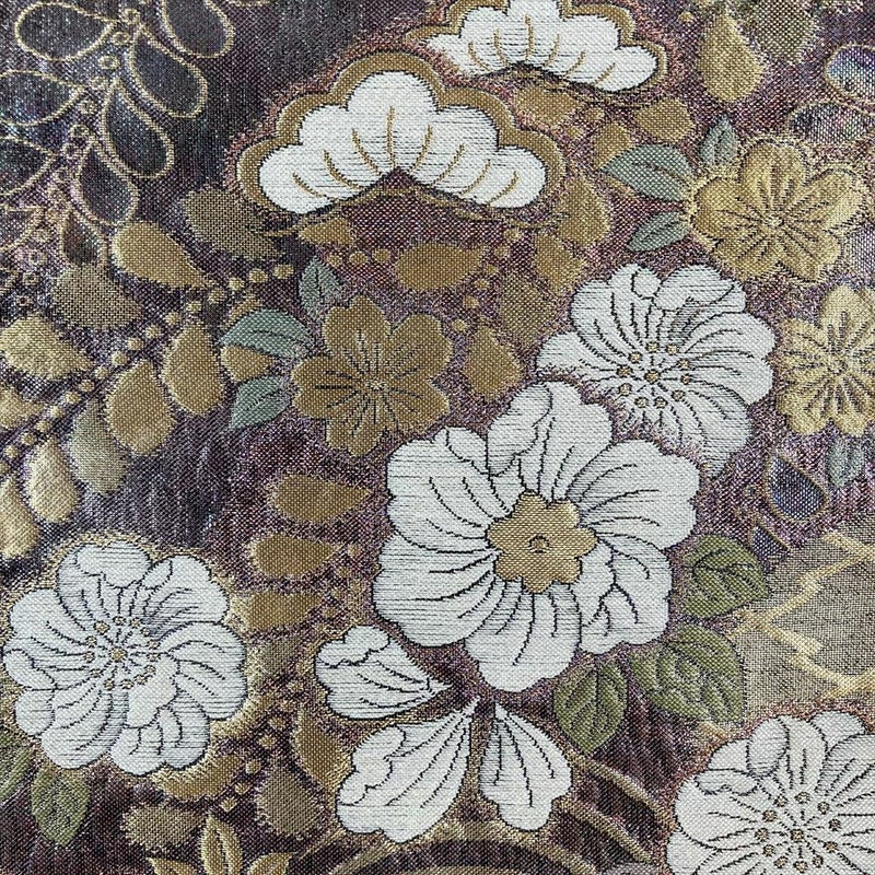 薄紫色の地色が、まるで宵の空を思わせるような神秘的な袋帯です。