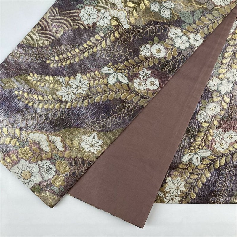 (中古)袋帯 薄紫色 セミフォーマル 六通 織り 引き箔 道長取り 辻が花