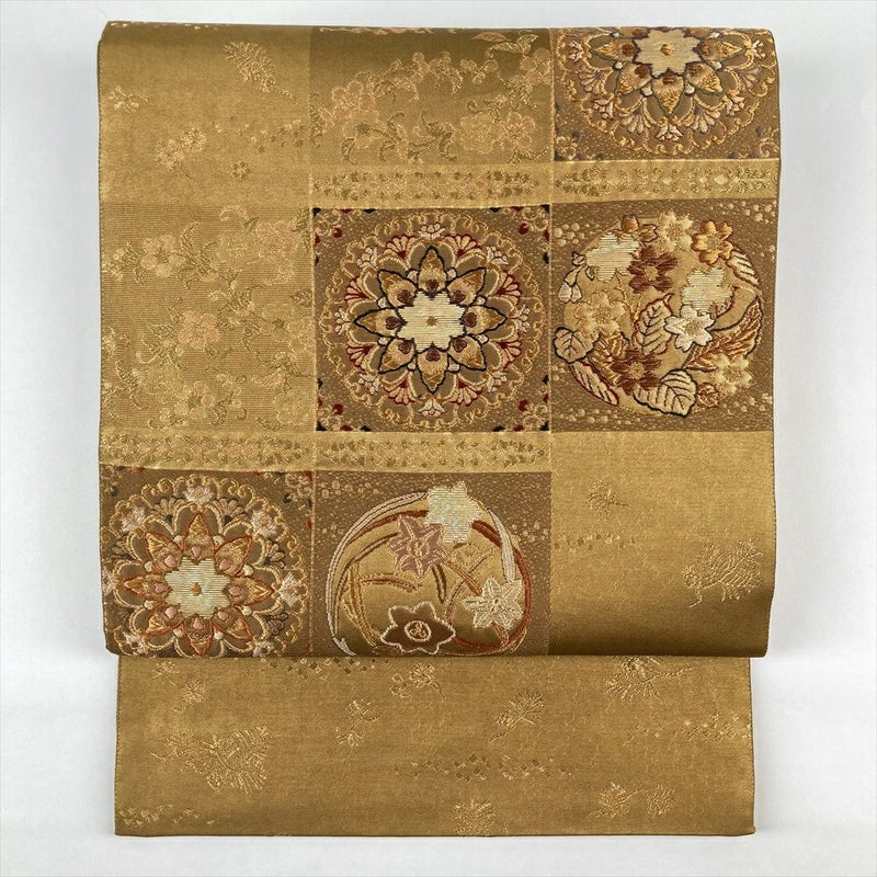 (中古)袋帯 金色 フォーマル 六通 織り 引き箔 金糸 華文 桜 水仙 若松