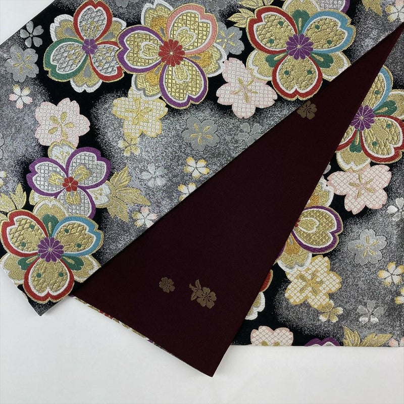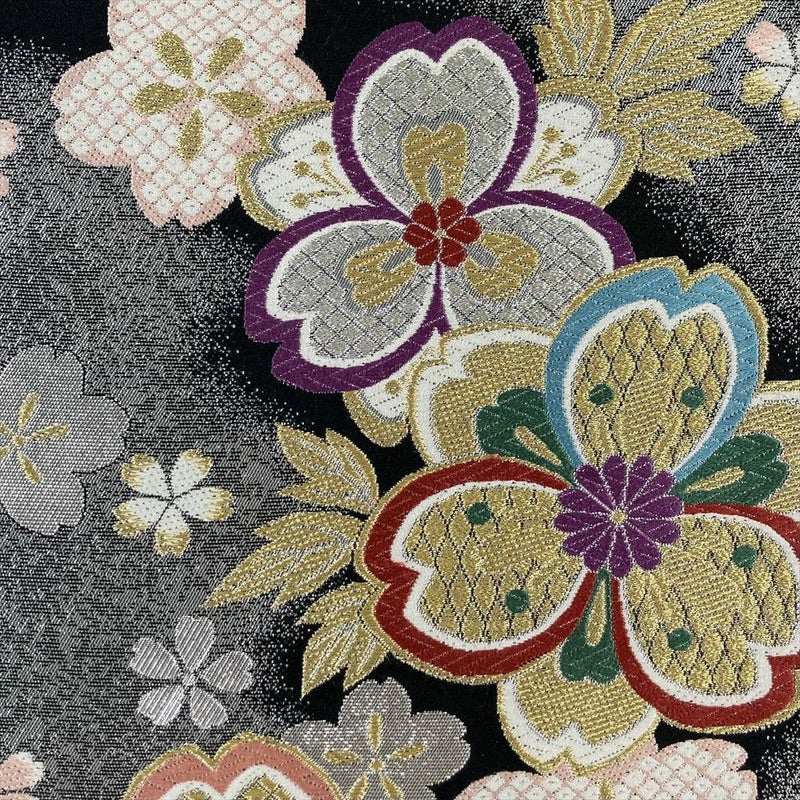 【色柄】黒 銀色 フォーマル 桜尽くし 引き箔 金糸 色糸 六通