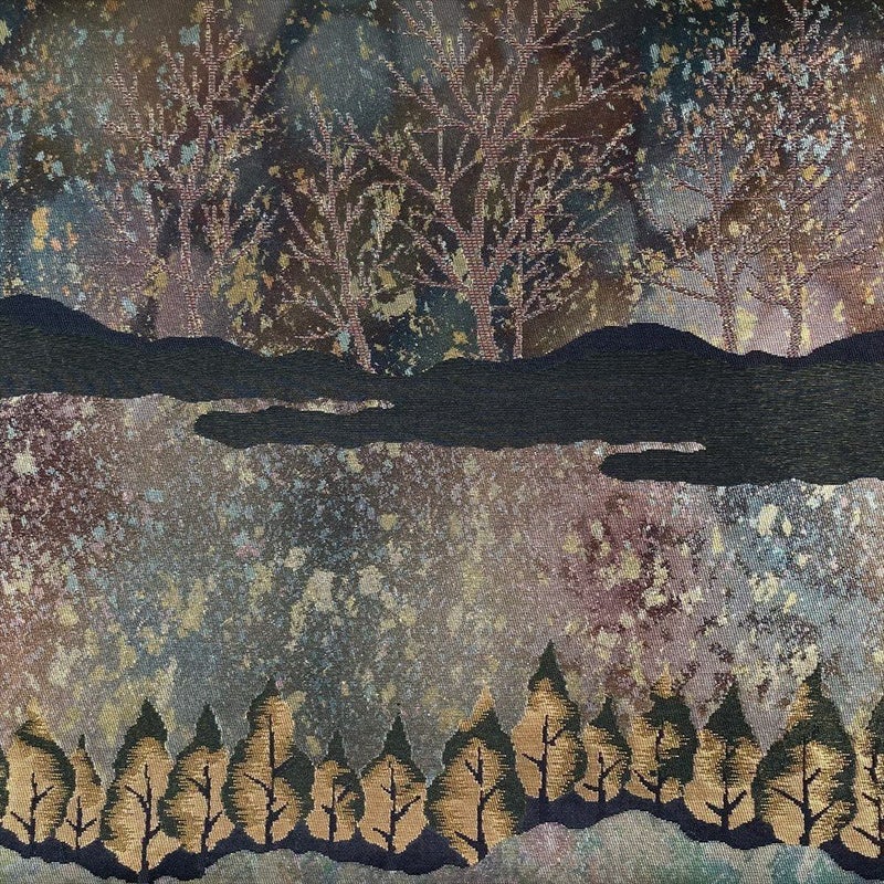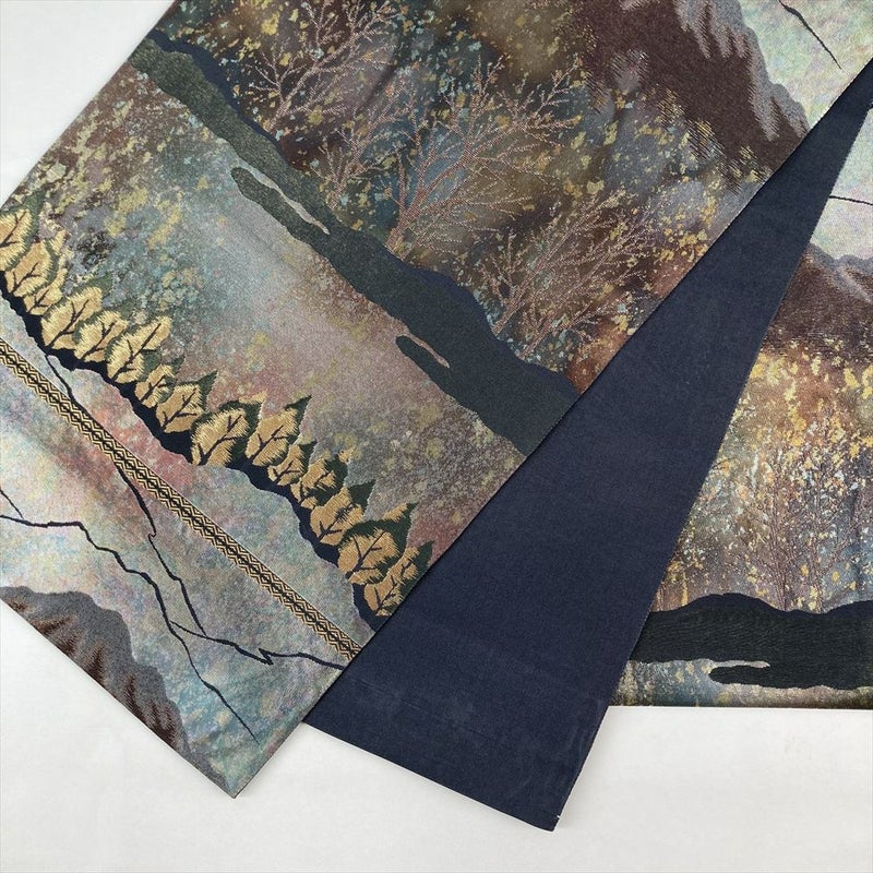 【色柄】濃緑色 フォーマル 山の景色 湖畔 織り 引き箔 銀糸 六通