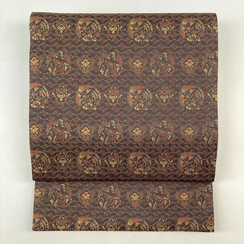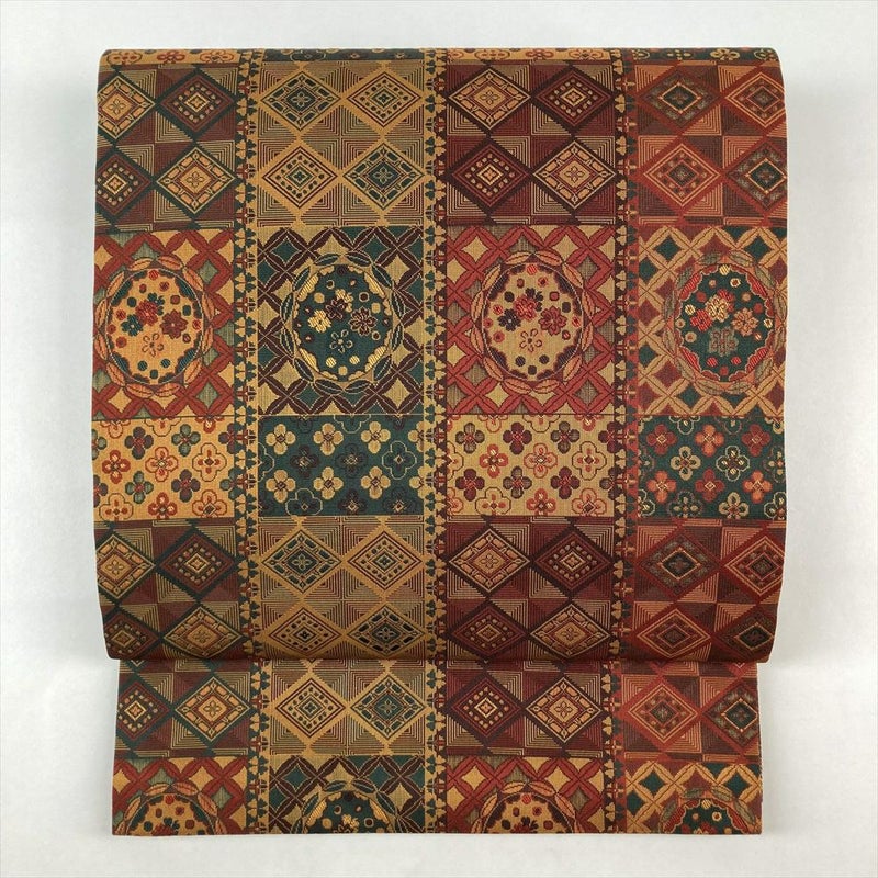 (中古)袋帯 マルチカラー カジュアル 全通 リバーシブル 織り ①梅 菱 市松②鳳凰 流