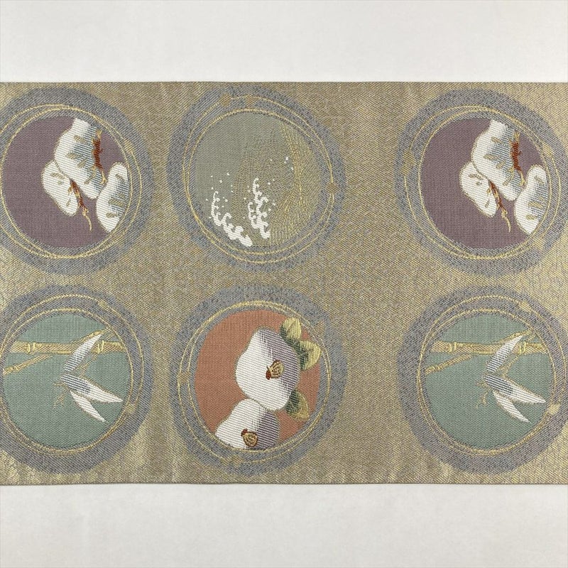 四季折々の花々が繊細に織り込まれており、まるで絵画を見ているような美しさです。