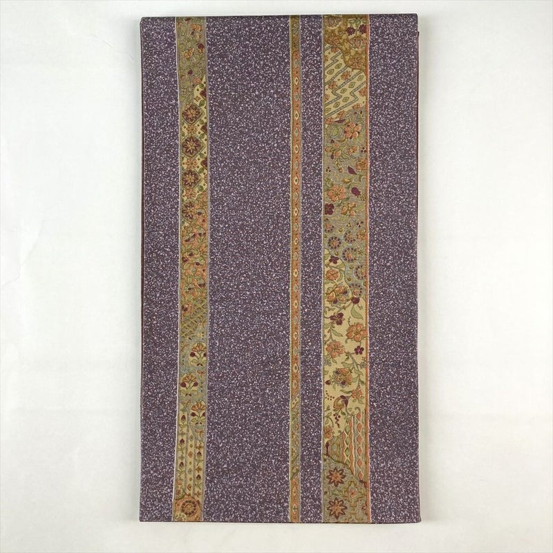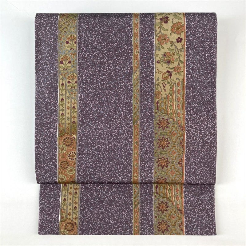 (中古)袋帯 紫 カジュアル 全通 染め 金彩 蒔糊 花唐草 絹
