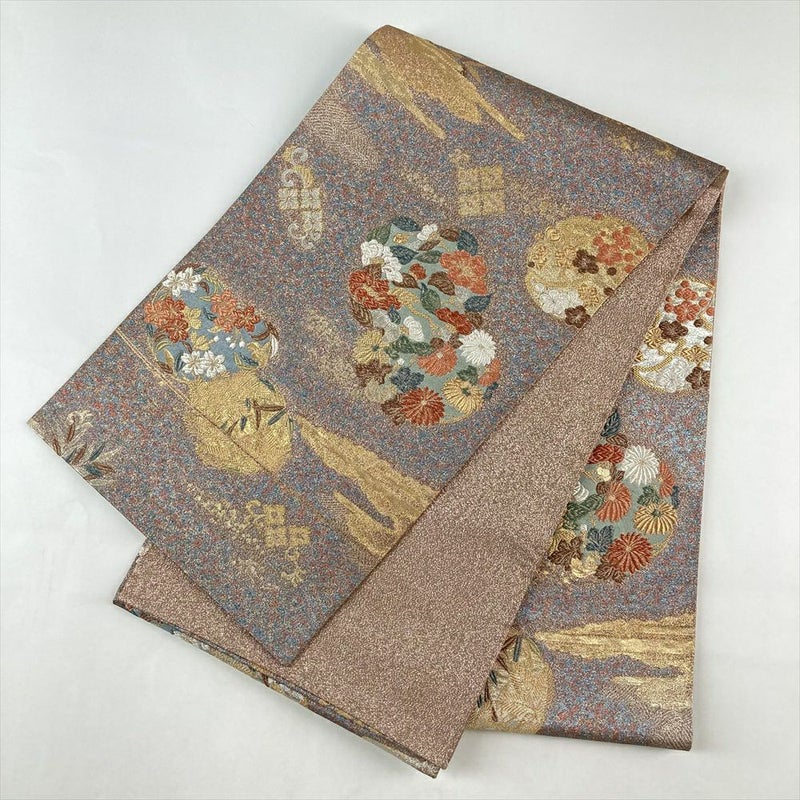 正絹 袋帯 花の丸