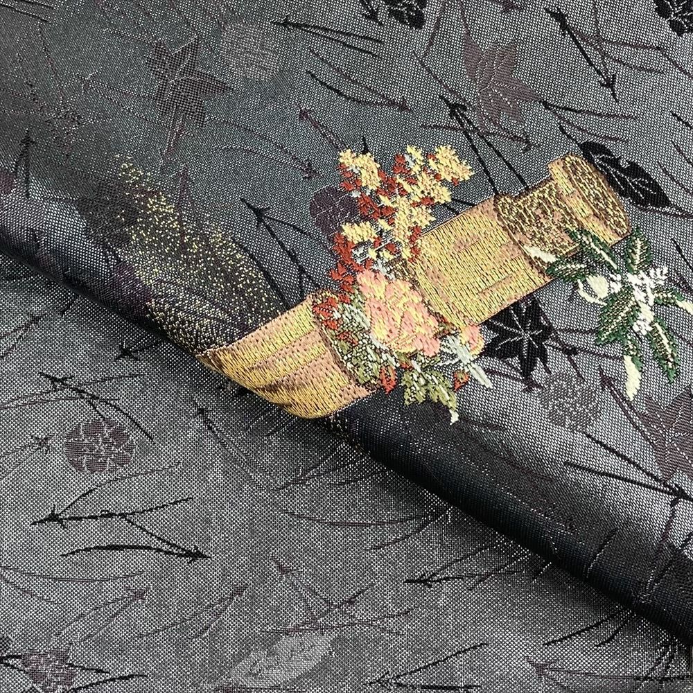 【色柄】藍墨茶色 セミフォーマル 一輪挿し 吹き寄せ 織り真珠箔 六通