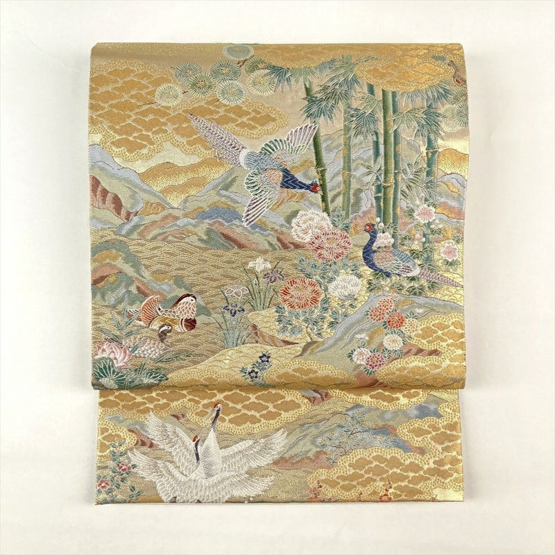 【色柄】金色 フォーマル 鶴 鴛鴦 雉 松竹梅 金糸 引き箔 六通