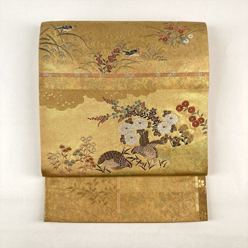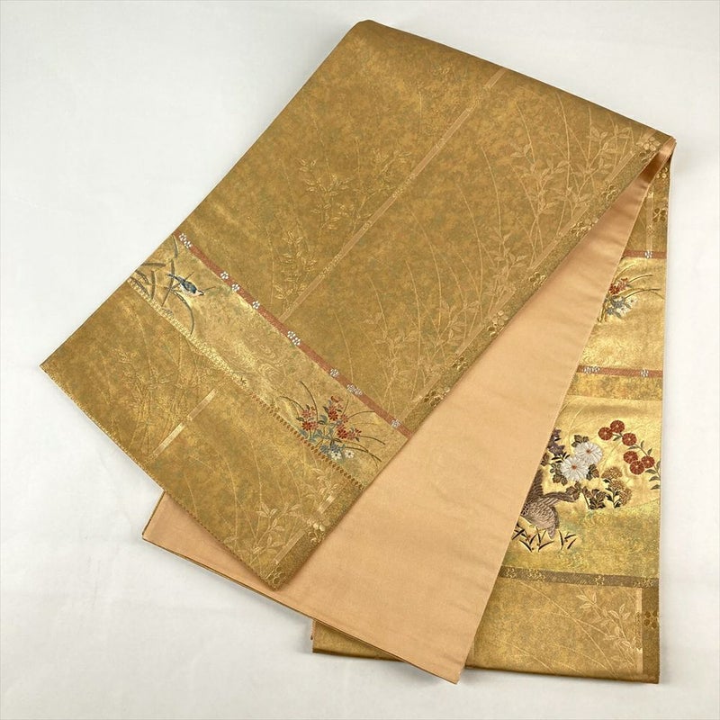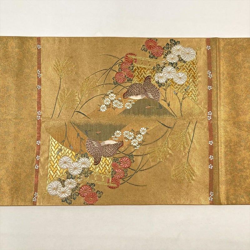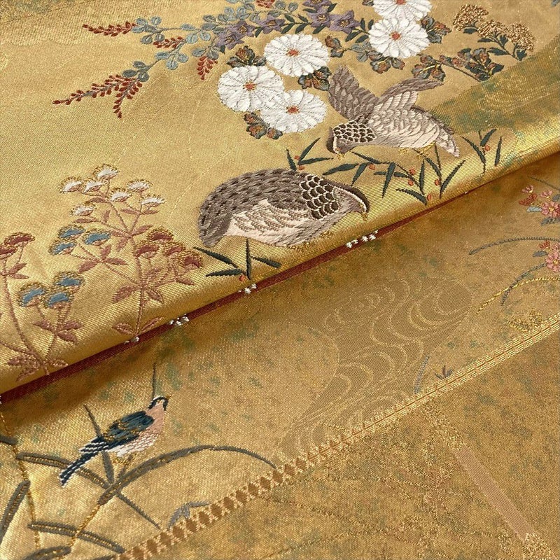 【色柄】金色 フォーマル 対の鳥 菊 萩 金糸 引き箔 六通