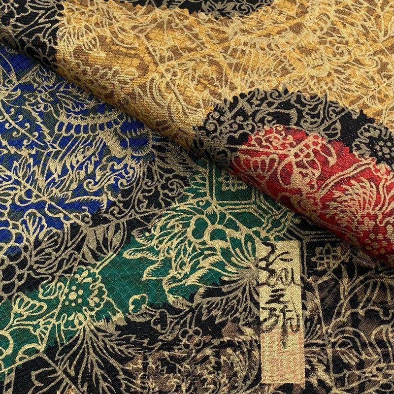 【色柄】マルチカラー カジュアル 花鳥 更紗 染め 金糸 全通