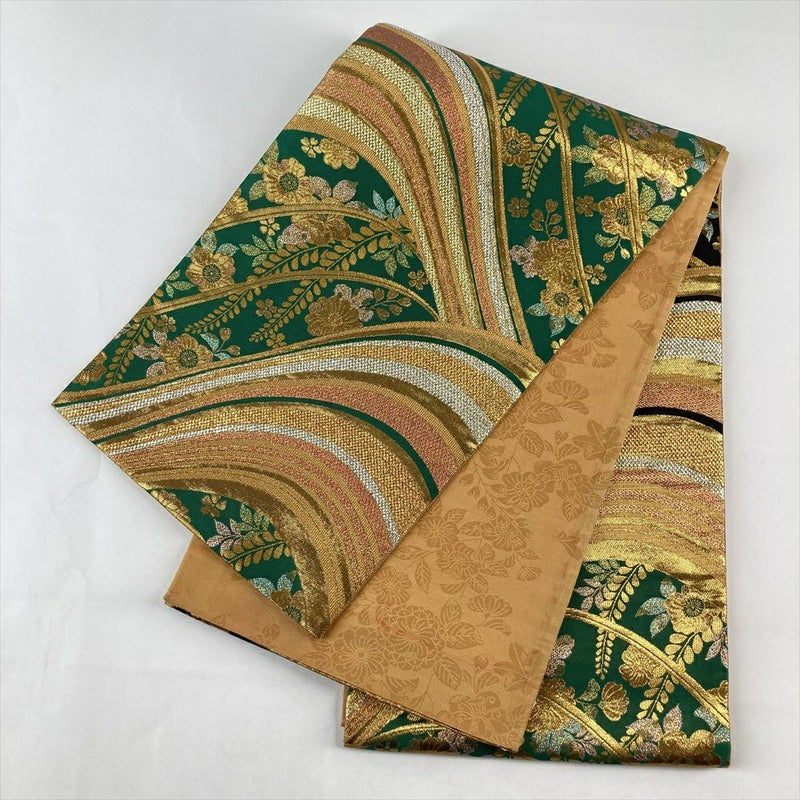 正絹 振袖用袋帯 金の波