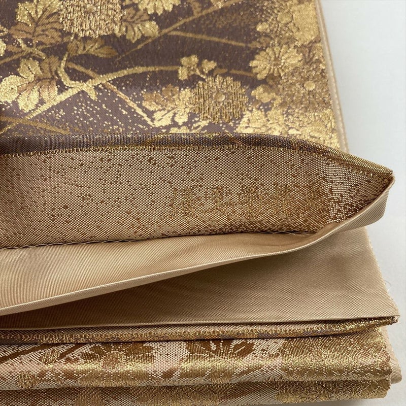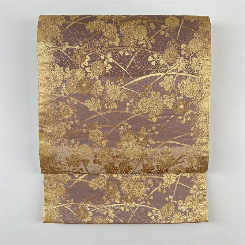 (中古)袋帯 灰紫 金 フォーマル 六通 織り 引き箔 草花 琳派 絹