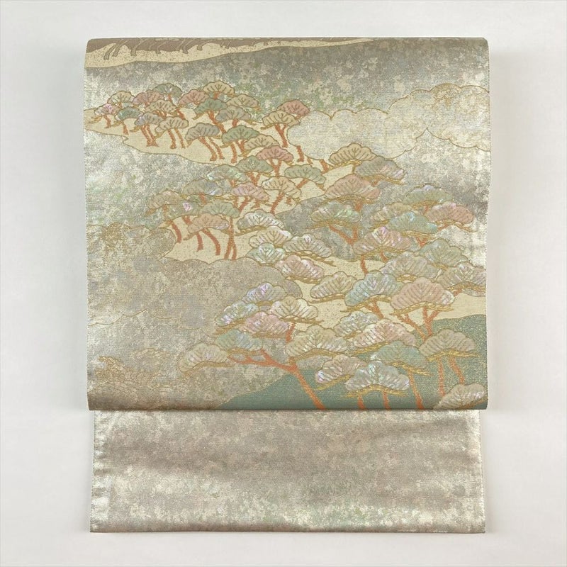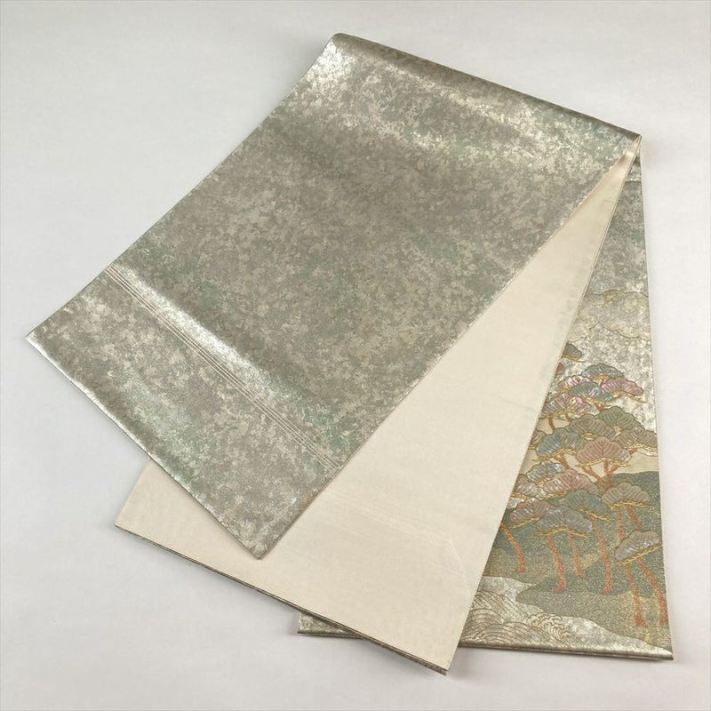 白砂青松の静けさとオパールの輝きが調和したこの袋帯は、あなたの着物姿をより一層特別なものにしてくれるでしょう。