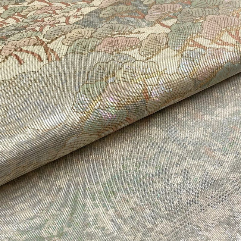 白砂青松の美しい風景を織り込んだ、上品な正絹の袋帯です。
