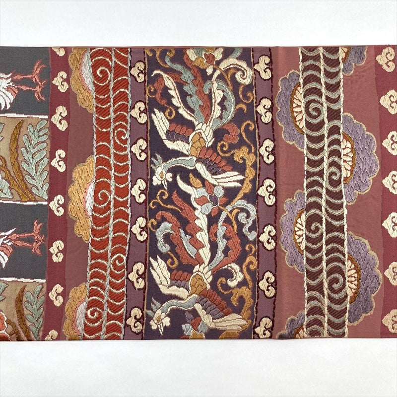 優雅な鳳凰が織り込まれた、オリエンタルな雰囲気漂う正絹袋帯です。