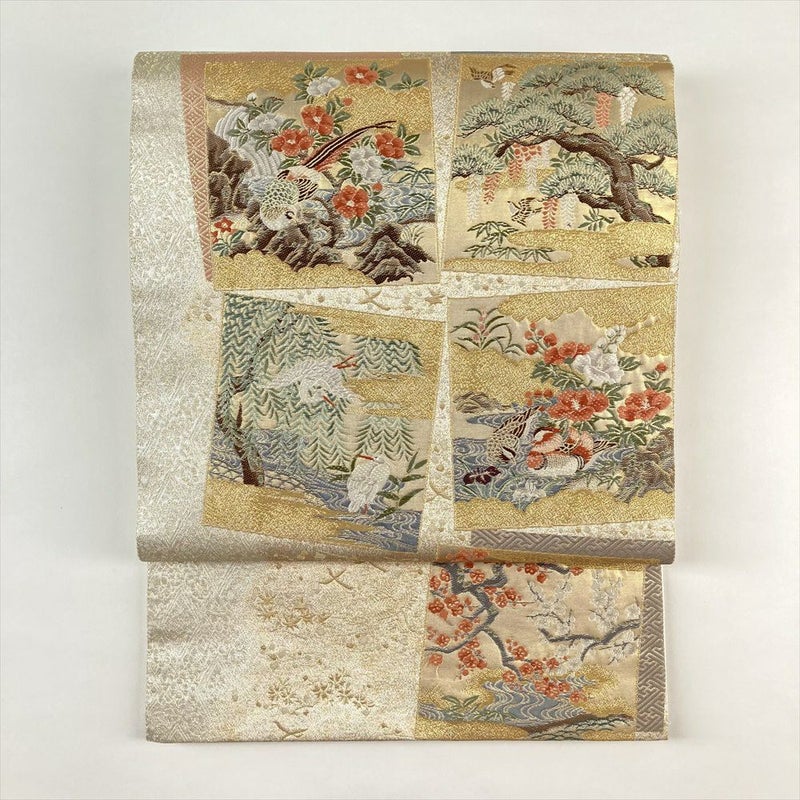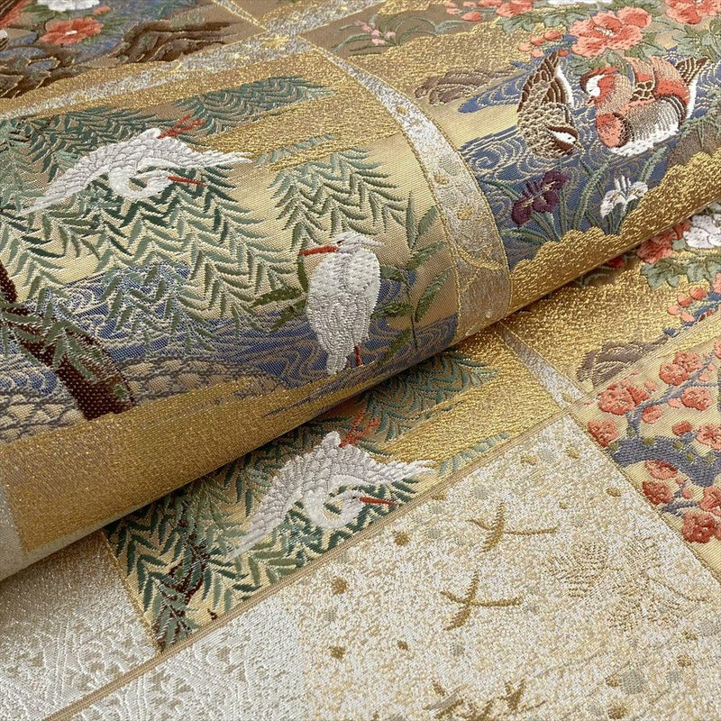 色紙文様の中に、四季折々の花鳥が優雅に舞う姿は、まるで絵巻物を広げたような美しさ。