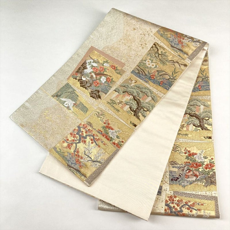 日本の伝統美、琳派の世界を織り込んだ正絹袋帯です。