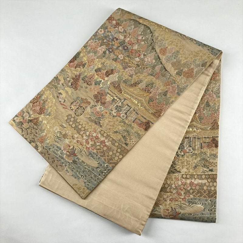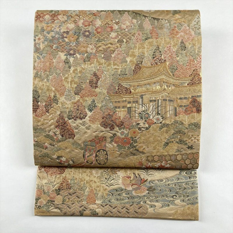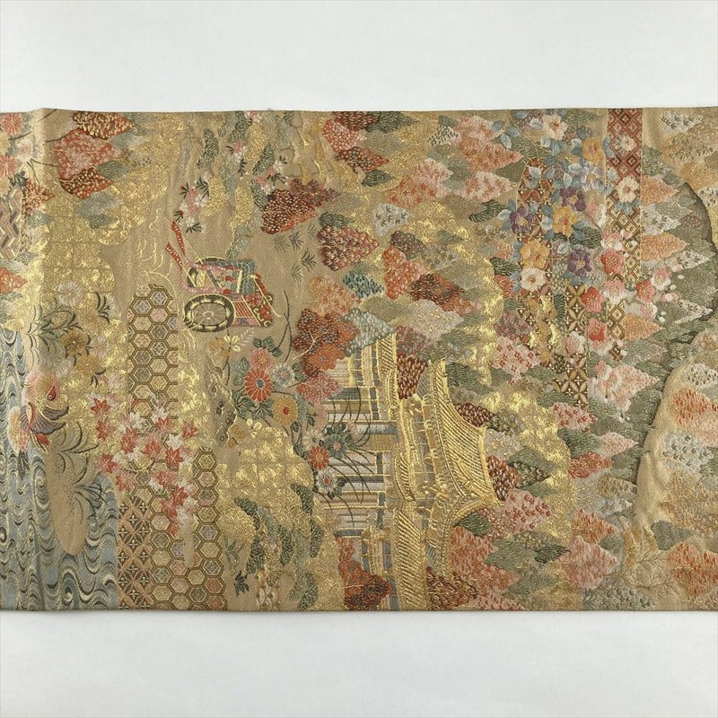 (中古)袋帯 金 フォーマル 六通 金糸 京洛図文様 絹