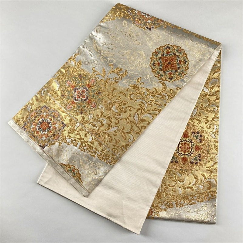 (中古)袋帯 金 銀 フォーマル 六通 金糸 引き箔 天平文様 絹