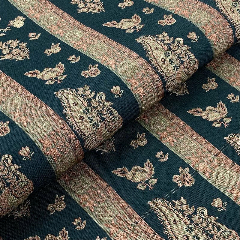 【色柄】深青緑 カジュアル 孔雀文 オリエンタル 色糸 全通