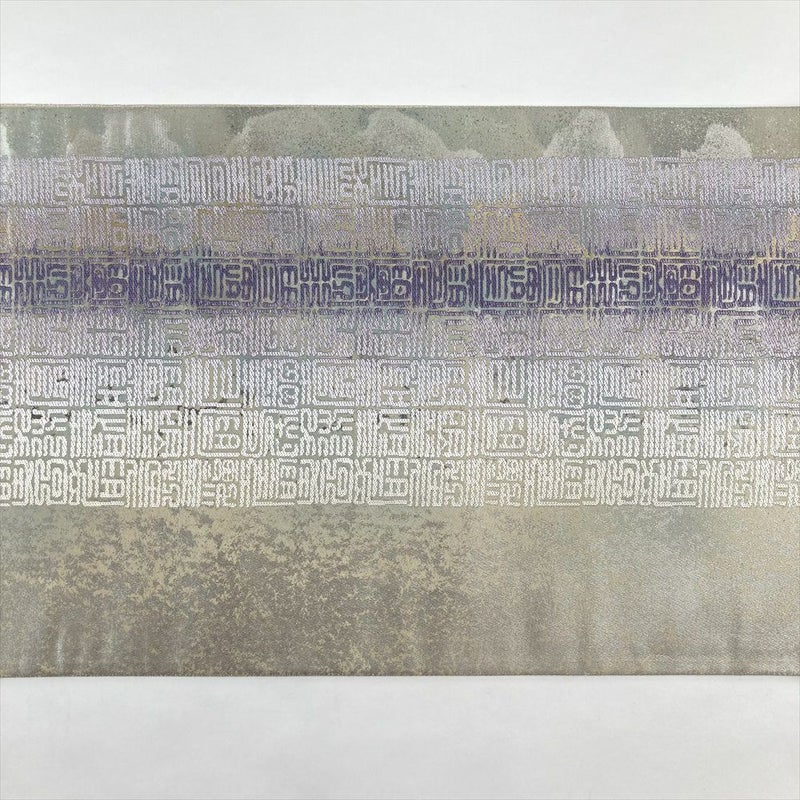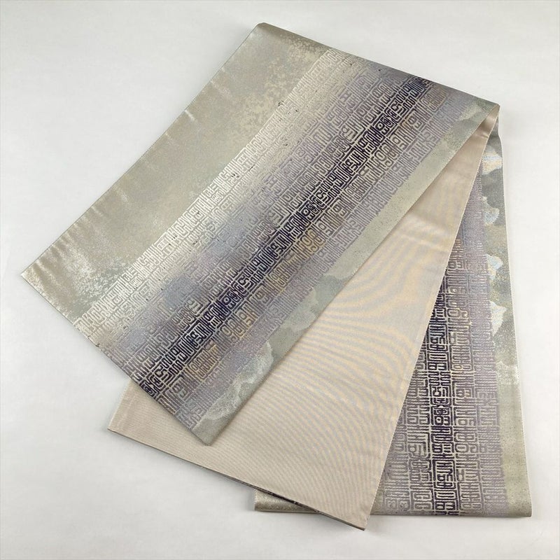 (中古)袋帯 銀色 青紫色 フォーマル 全通 引き箔 寿の文字 絹