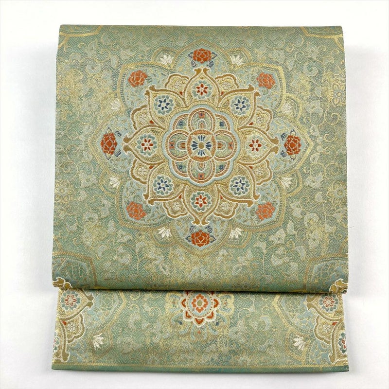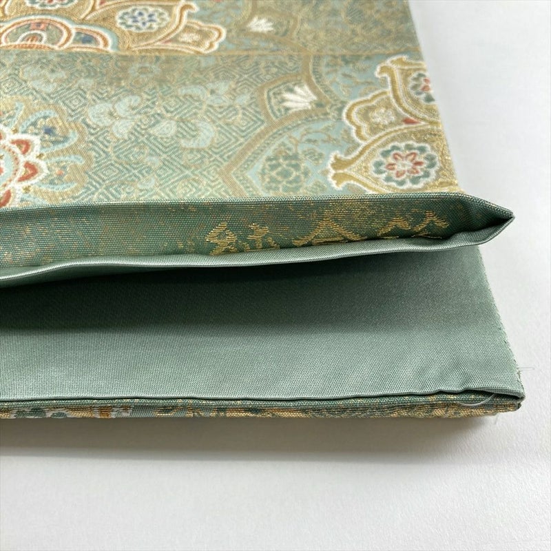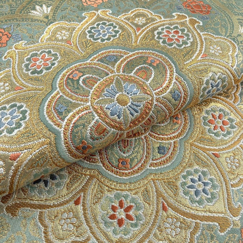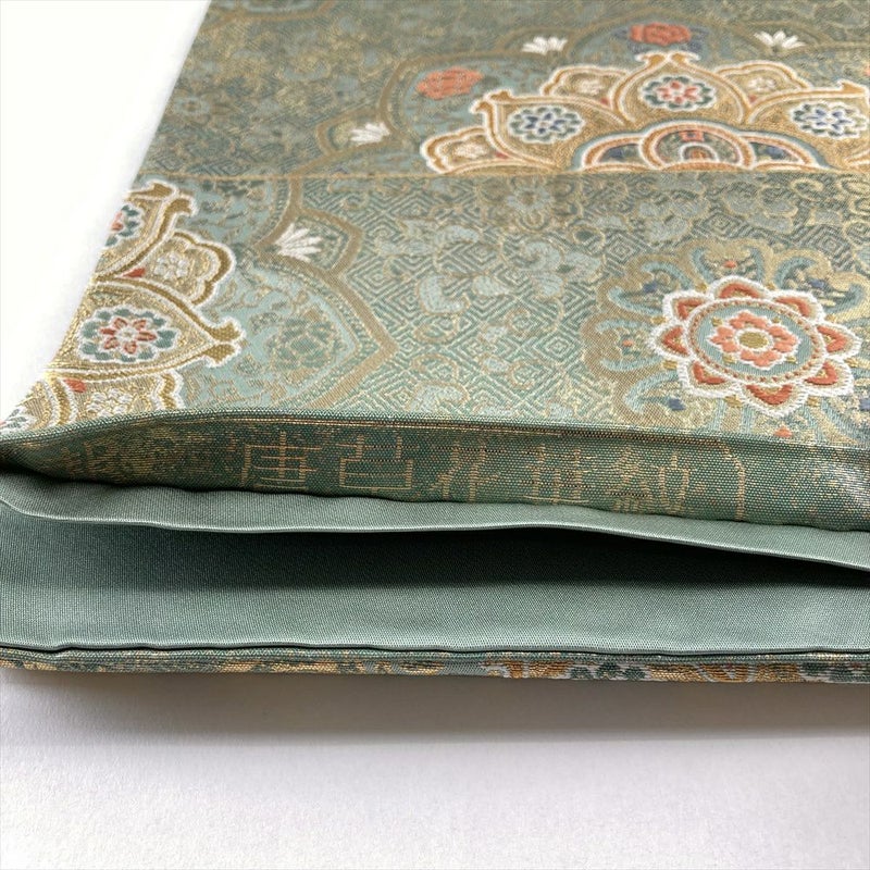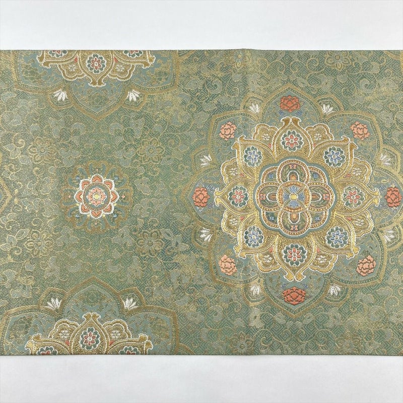 【色柄】金色 灰緑 フォーマル 唐草華文 引き箔 金糸 色糸 六通