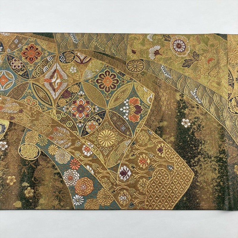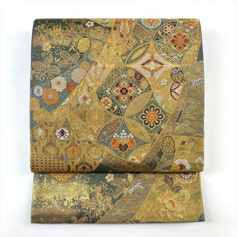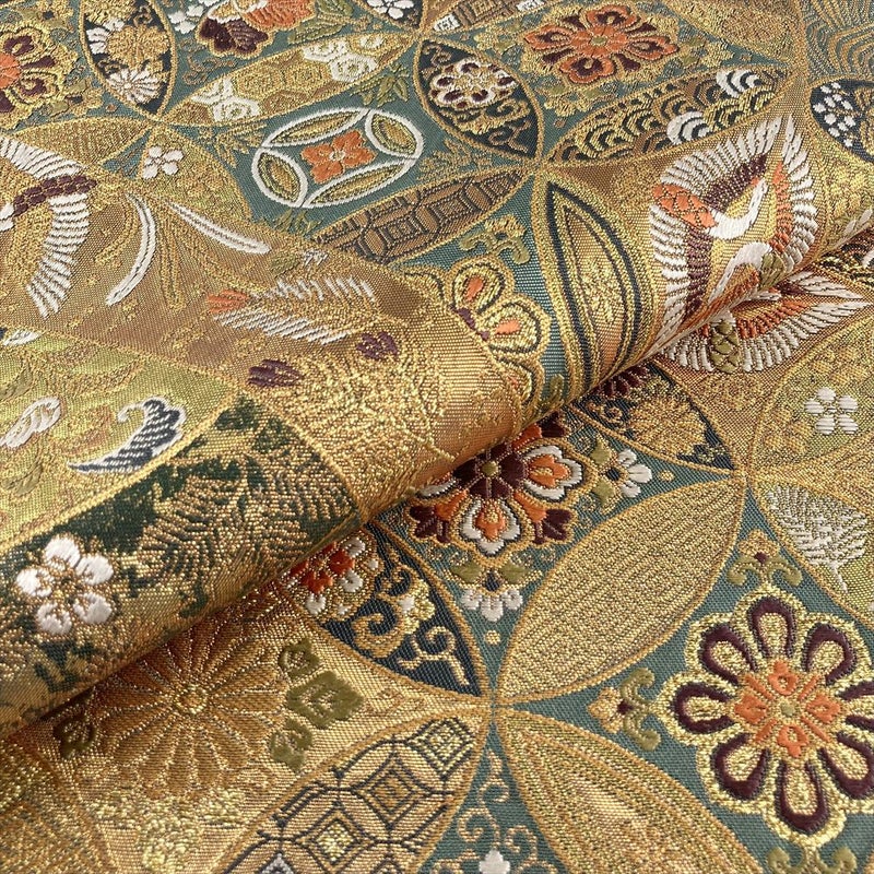 【色柄】金色 フォーマル 巻物 七宝 花鳥 引き箔 金糸 色糸 六通