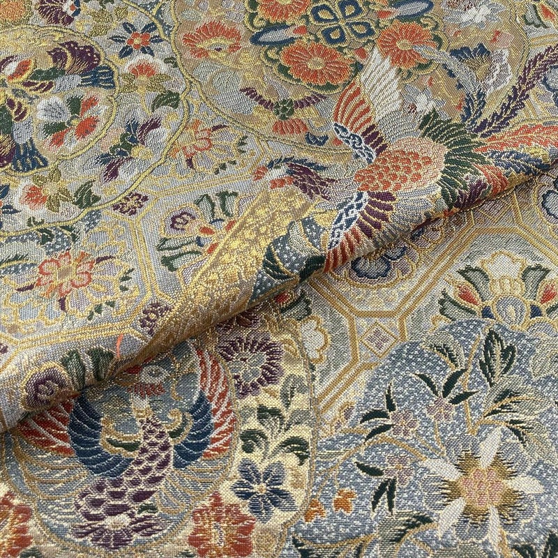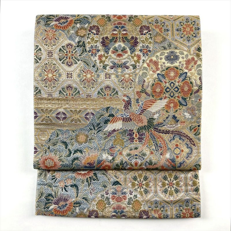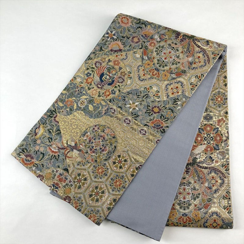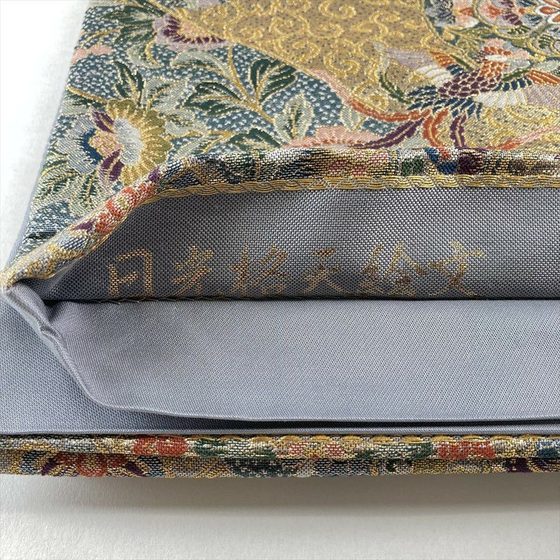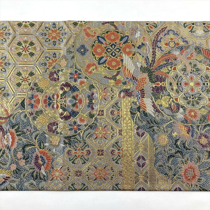 【色柄】金色 灰青 フォーマル 天平文 鳳凰 唐花 引き箔 色糸 六通