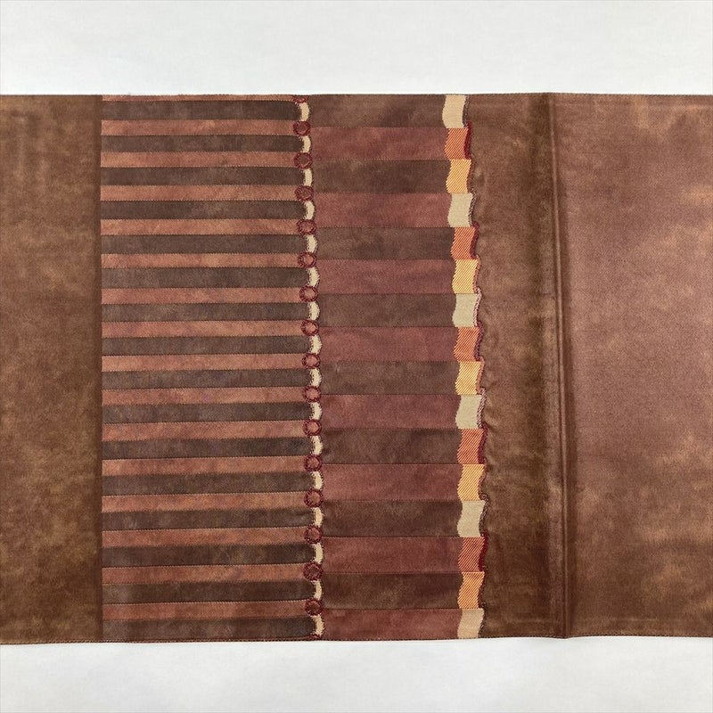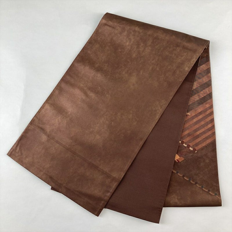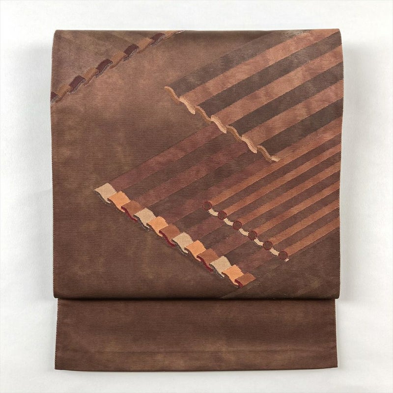 (中古)袋帯 焦げ茶 カジュアル 六通 織り 瓦文 絹