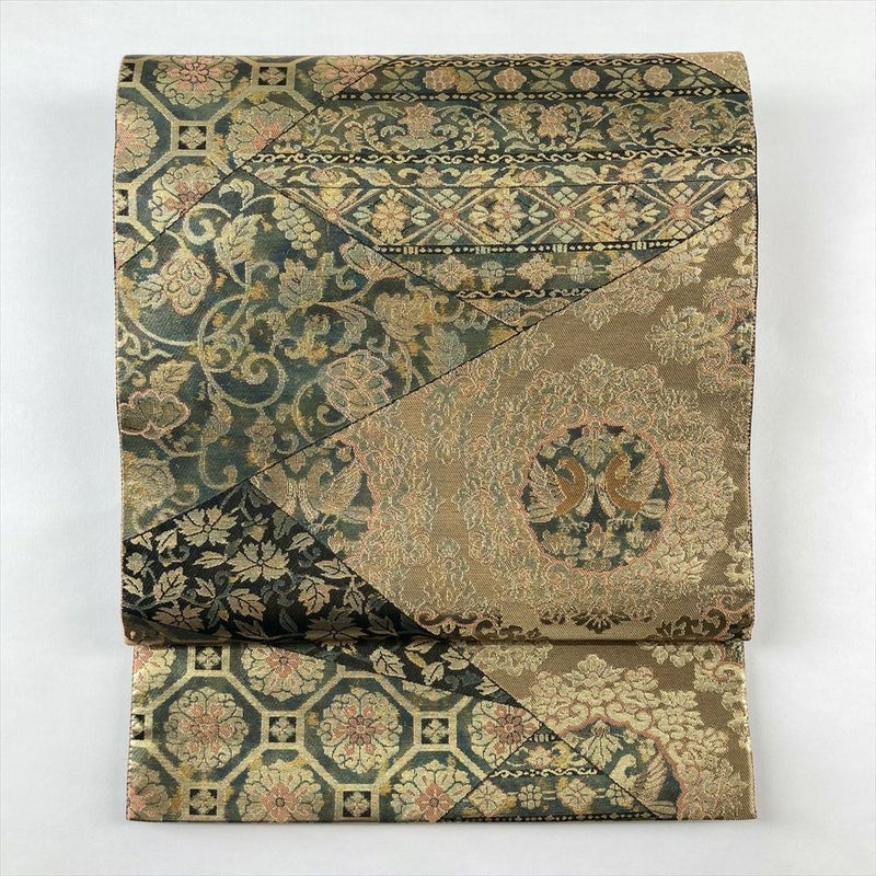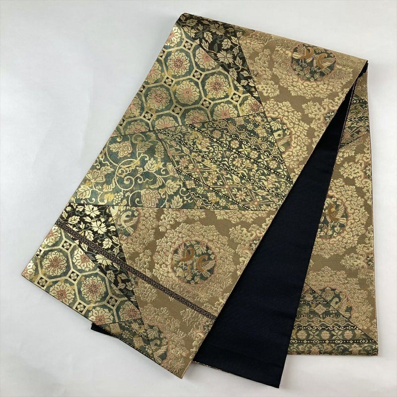 (中古)袋帯 金 フォーマル 六通 引き箔 切り嵌め 天平文 絹