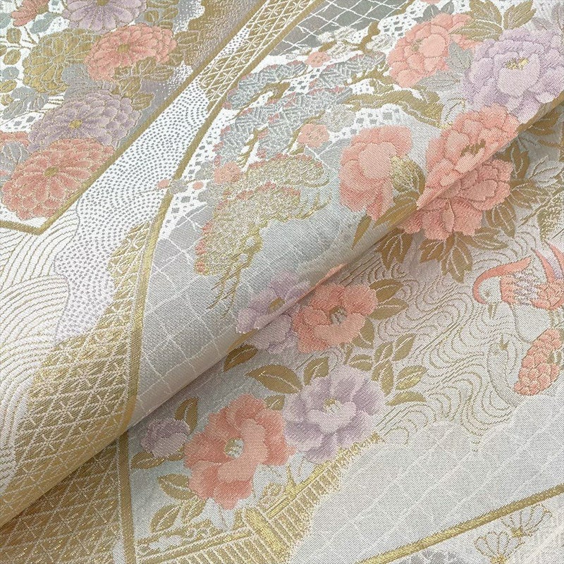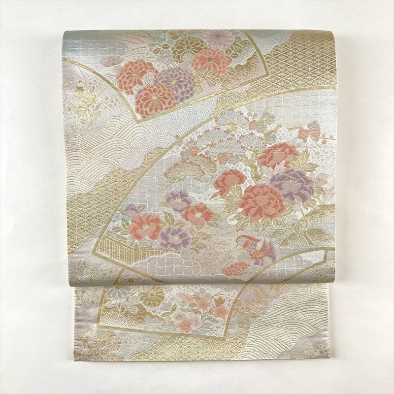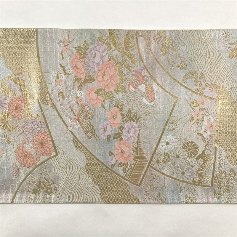 セミフォーマル袋帯 扇面 花鳥