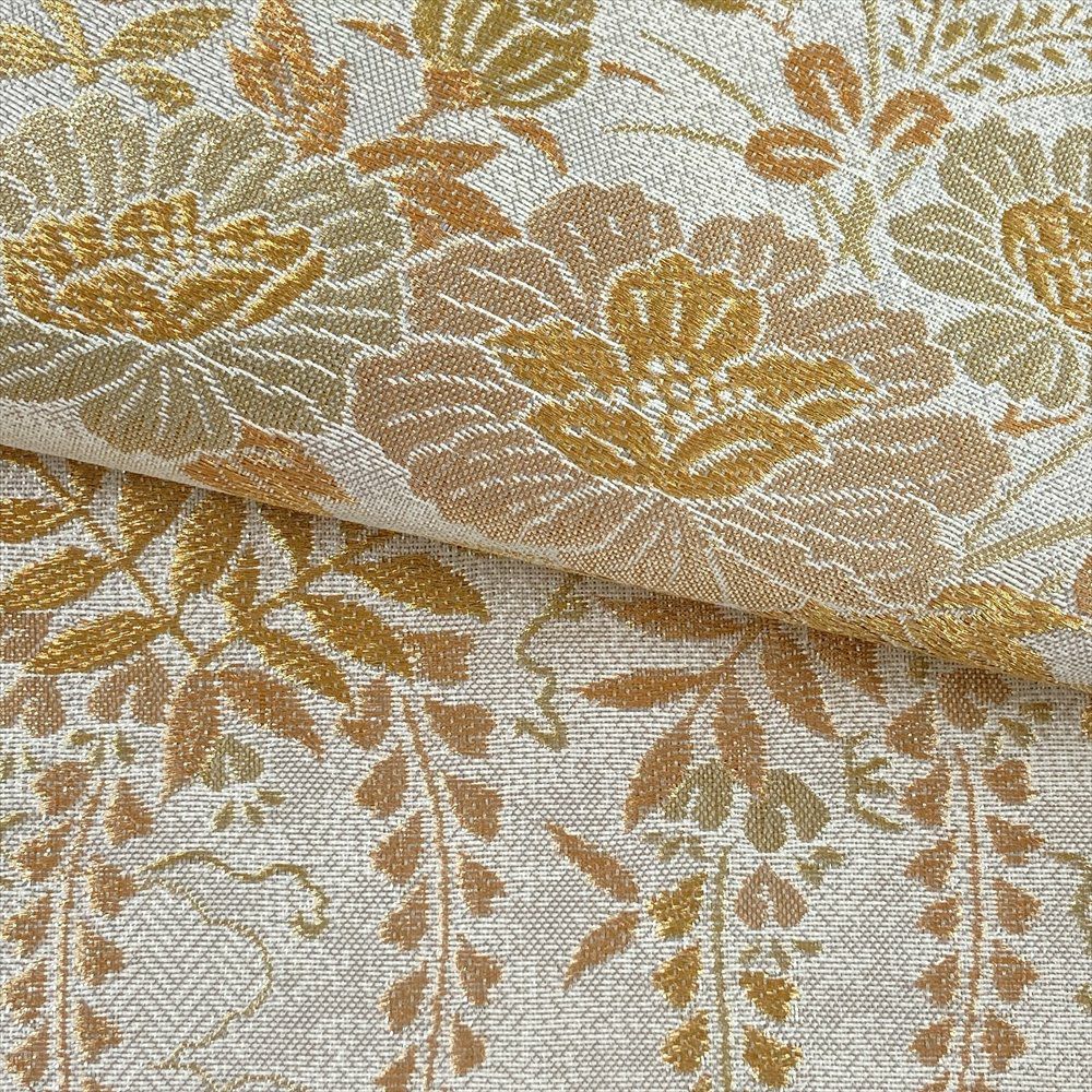繊細に織り出された草花文が、まるで絵画のように優美な世界観を表現しています。