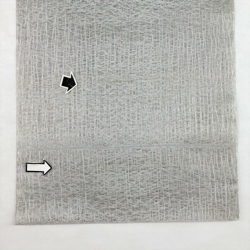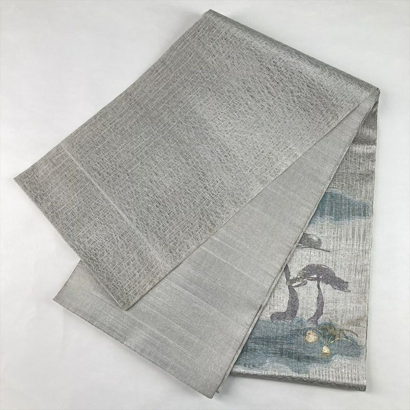 (中古)袋帯 銀鼠 グレー カジュアル 六通 銀糸 色糸 水辺文 絹