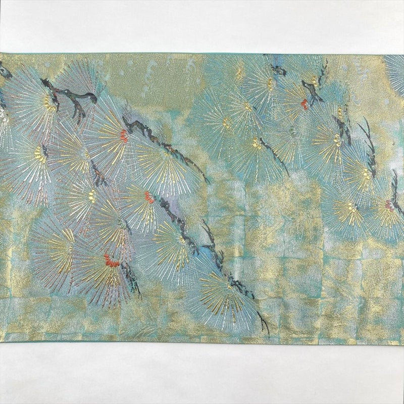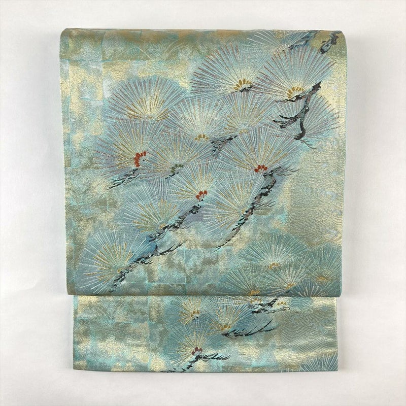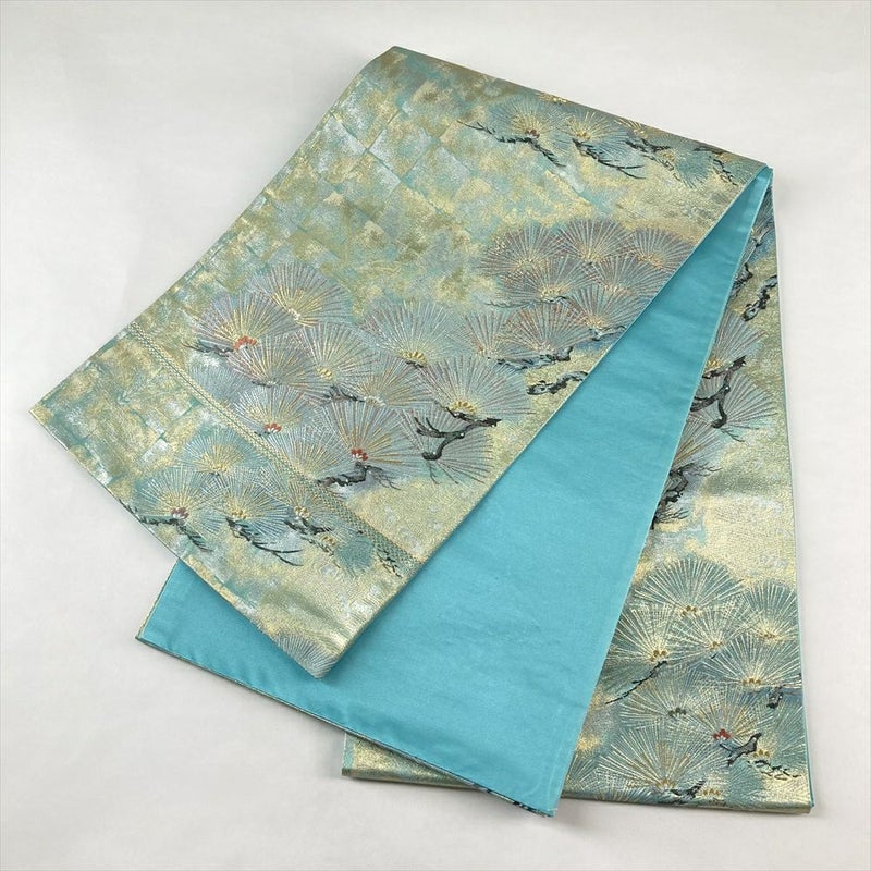 (中古)袋帯 水色 金 フォーマル 六通 金糸 銀糸 松 絹