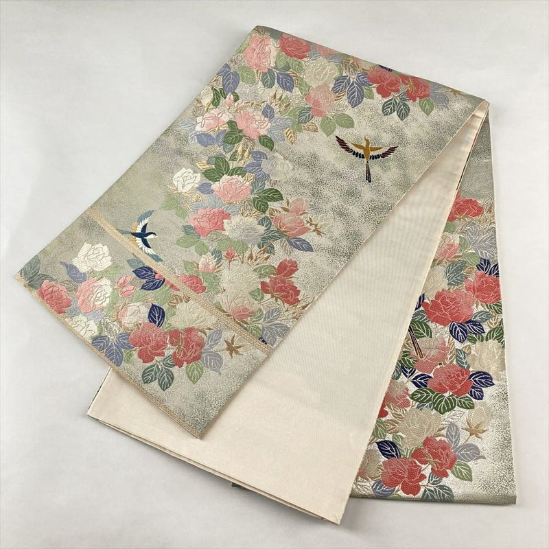 しゃれ袋帯 薔薇と小鳥たち