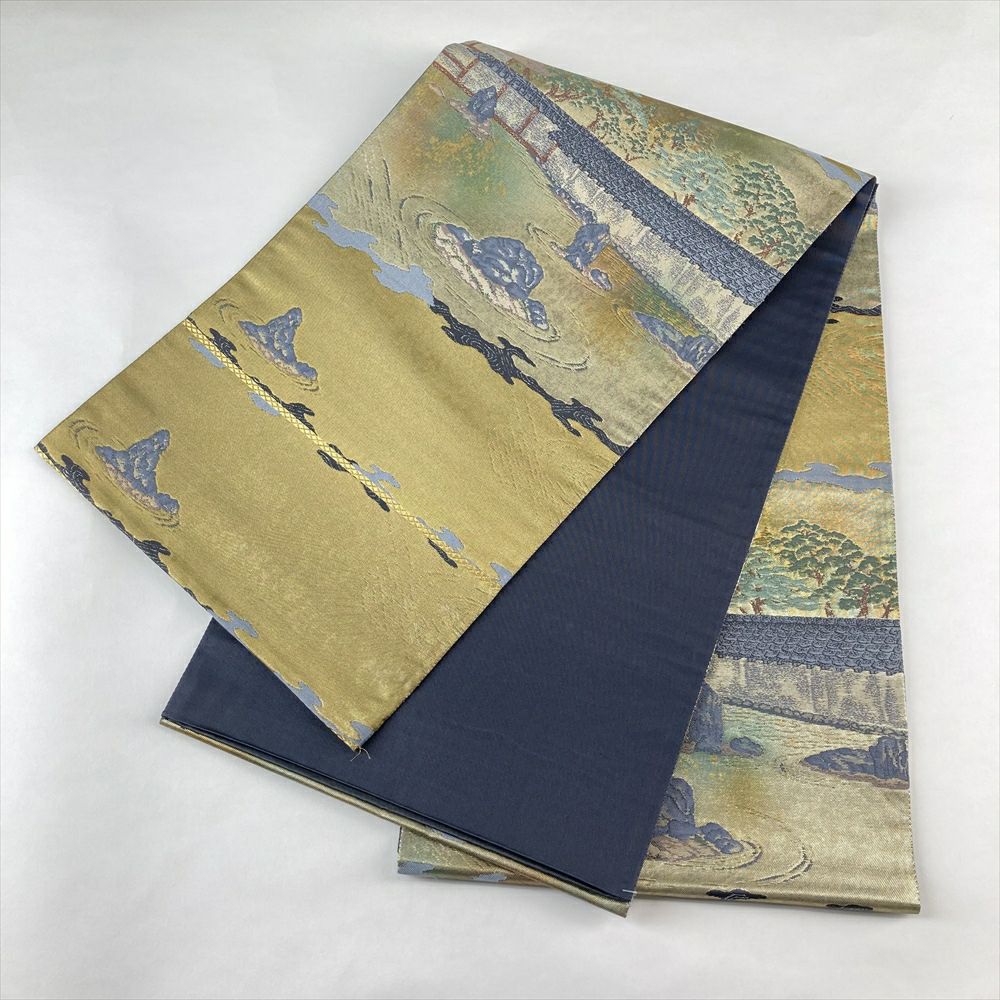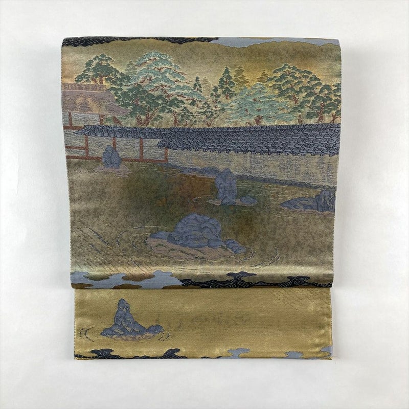 (中古)袋帯 金 セミフォーマル 六通 引き箔 色糸 竜安寺石庭 絹